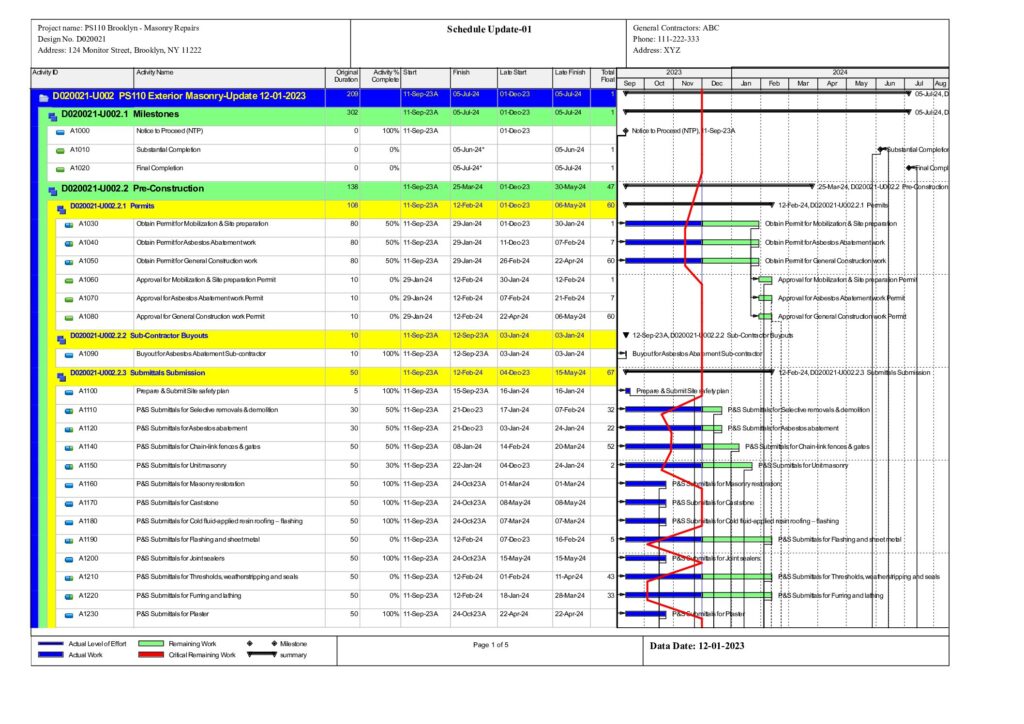 The schedule is continuously monitored, and updates are made as needed to reflect actual progress and changes. This includes re-sequencing tasks, reallocating resources, and adjusting timelines.